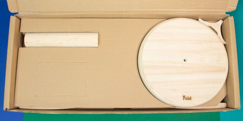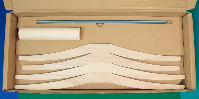 Place the foot in the large notch on the left. And place the 2 small wooden rods under the foot.