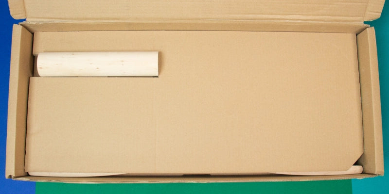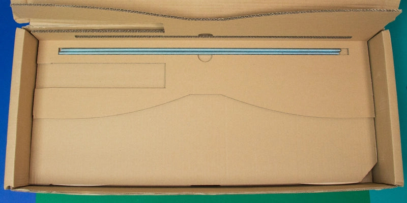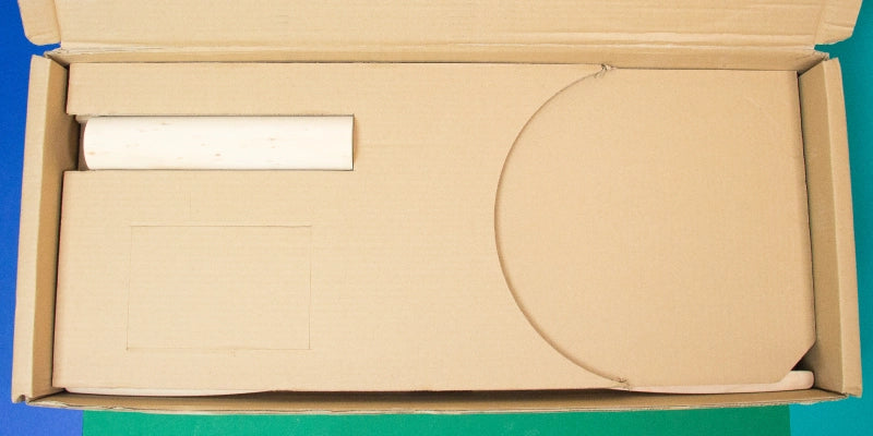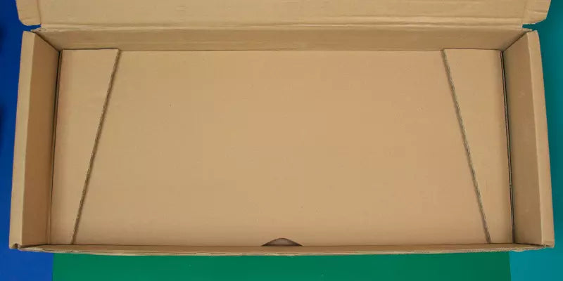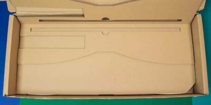 Place the large cardboard insert with only the notch on the left (for the foot).